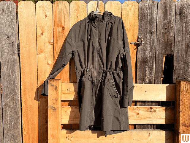 I love this rain jacket. I was walking in the city with my friend (in the rain) when a truck suddenly went through a puddle right next to us on the road and covered me head to toe, Sex and the City-style. This jacket kept me dry. Its waterproofing specs are average—it uses a carbon-based, durable water repellent and has a HH rating of 10K, which is about half the waterproofing of what some of our other picks have—but I really like its design features.