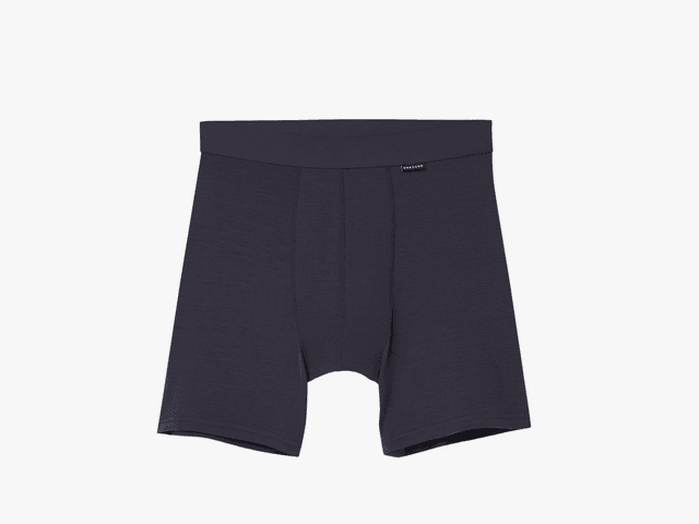 These Unbound boxers are 84 percent merino wool, 12 percent nylon and 4 percent spandex, for a soft, stretchy, comfortable fit. They’re 180 GSM (see our merino guide for exactly what GSM means), which makes them nice and light. The inseam here is 5.5 inches, and there’s no tag, which is nice.